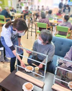 楽らく渕では、10月より月に1回「楽cafe」を開催しております。 今月の楽cafeでは、以前福井駅前で販売されていた”今川焼”をメインに、 お好きなお飲み物とともに提供いたしました。 ゆったりとしたカフェの雰囲気を味わっていただきながら、 利用者様同士の交流を深める場として、穏やかな時間をお過ごしいただきました。 参加された皆様からは、「とても美味しかった」「スタッフのいつもと違う一面が見られて楽しかった」 「毎日でも開催してほしい」など、うれしいお声を多数いただきました。 今後も、利用者様に喜んでいただける時間を大切にしながら、楽しいひとときを提供してまいります。![]()